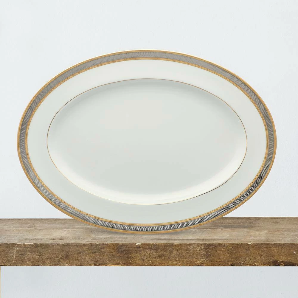 Brilliance features generous applications of etched metal banding. The mixture of gold and platinum bring the versatility of mixed metals to the table. Brilliance is crafted on fine bone china, is suitable for everyday use and is dishwasher safe.