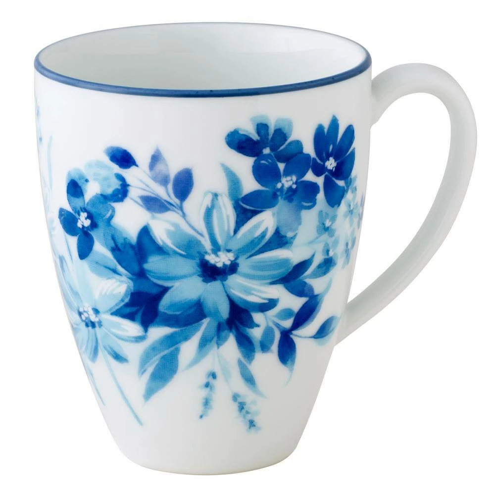 16 oz. White/Blue Blossom Road White Porcelain Mugs (Set of 4) by Noritake