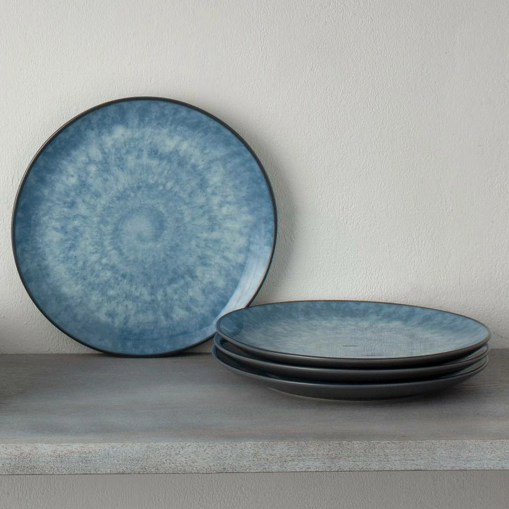 ColorKraft is a modern rustic dinnerware collection. Crafted in stoneware, ColorKraft items are safe to use in the microwave and the dishwasher. The collection includes place settings and serving pieces which feature a rotating nautilus-shell design on each piece, spiraling out from the center. The salad and dinner plates are anchored by the sheen of a solid pewter finish. The collection includes 5 colors: Azurite, Citrine, Garnet, Jade, and Onyx.