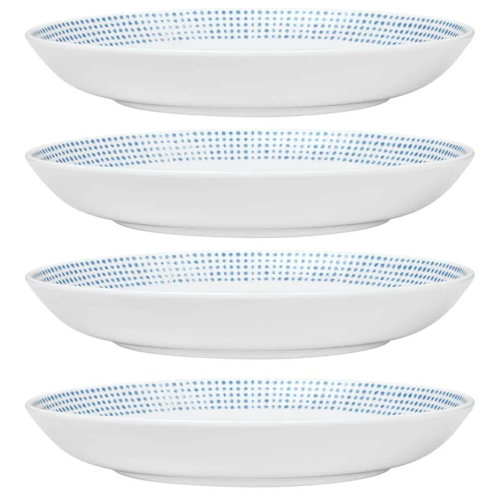 A variety of motifs adorn Noritakes Hammock Collection dinnerware in dishwasher-and-microwave-safe porcelain. The collection is available in 3 colors: blue, grey, and khaki. Each piece incorporates dots, stripes, and other patterns and visual textures in different ways to give this distinctive casual dining collection a mix-and-match look paired with fresh and modern appeal.