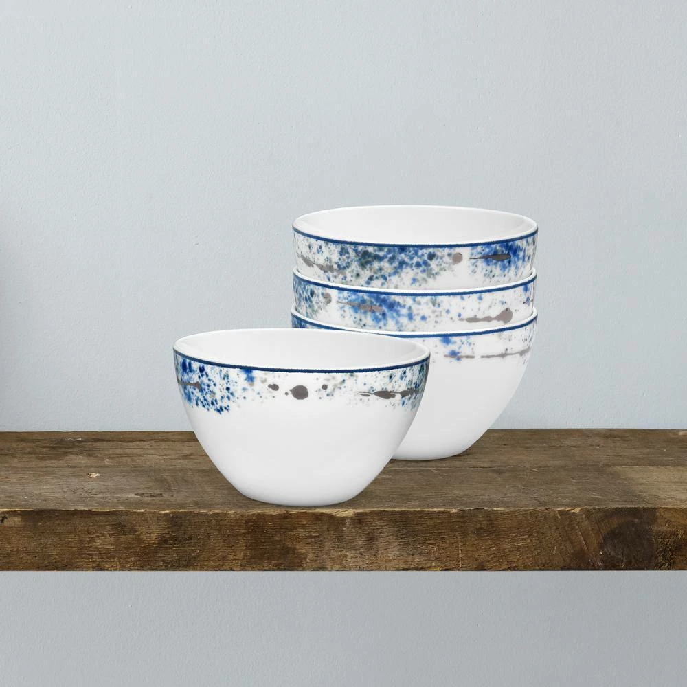 Bring stellar design and function to the table with Blue Nebula by Noritake. This pattern features an array of blue and grey splatters on white porcelain, pairing high-end design with casual versatility. Blue Nebula is suitable for everyday use and is dishwasher and microwave safe.