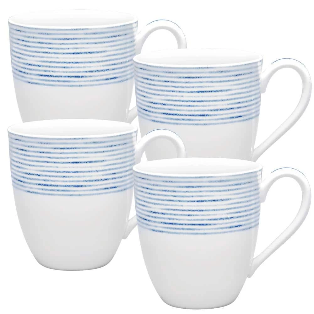 A variety of motifs adorn Noritakes Hammock Collection dinnerware in dishwasher-and-microwave-safe porcelain. The collection is available in 3 colors: blue, grey, and khaki. Each piece incorporates dots, stripes, and other patterns and visual textures in different ways to give this distinctive casual dining collection a mix-and-match look paired with fresh and modern appeal.