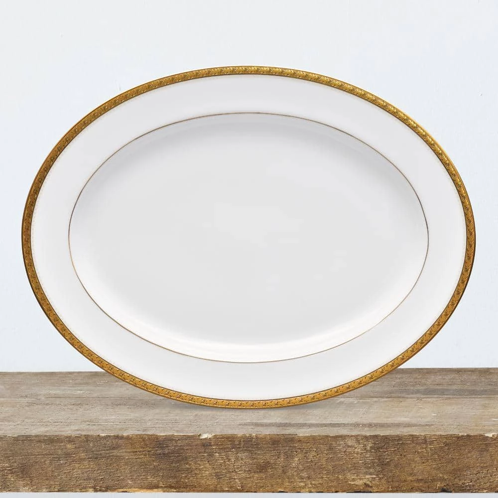 Charlotta Gold is a beautifully classic collection in white porcelain, featuring the modern addition of microwave-safe gold. The prominent gold banding features flowers and scrolling leaves. It’s perfect for elegant dinners while casual enough for daily use.