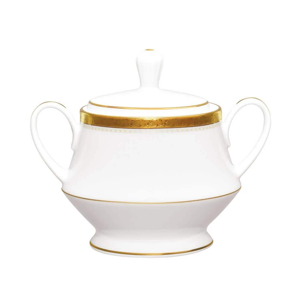 Charlotta Gold is a beautifully classic collection in white porcelain, featuring the modern addition of microwave-safe gold. The prominent gold banding features flowers and scrolling leaves. It’s perfect for elegant dinners while casual enough for daily use.