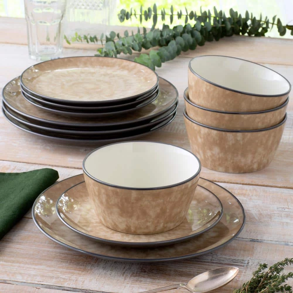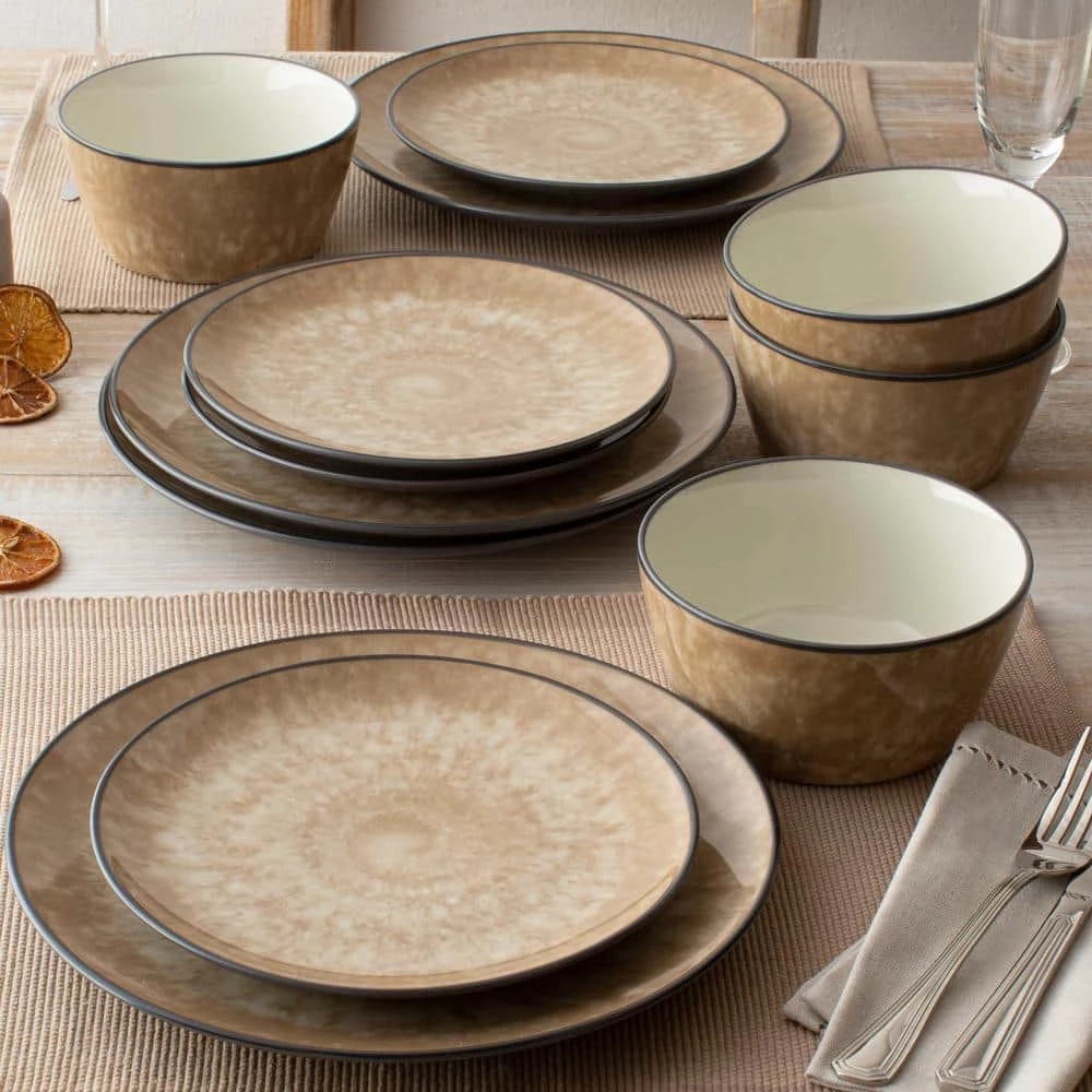 ColorKraft Essence Citrine (Brown) Stoneware 12-Piece Dinnerware Set (Service for 4) by Noritake