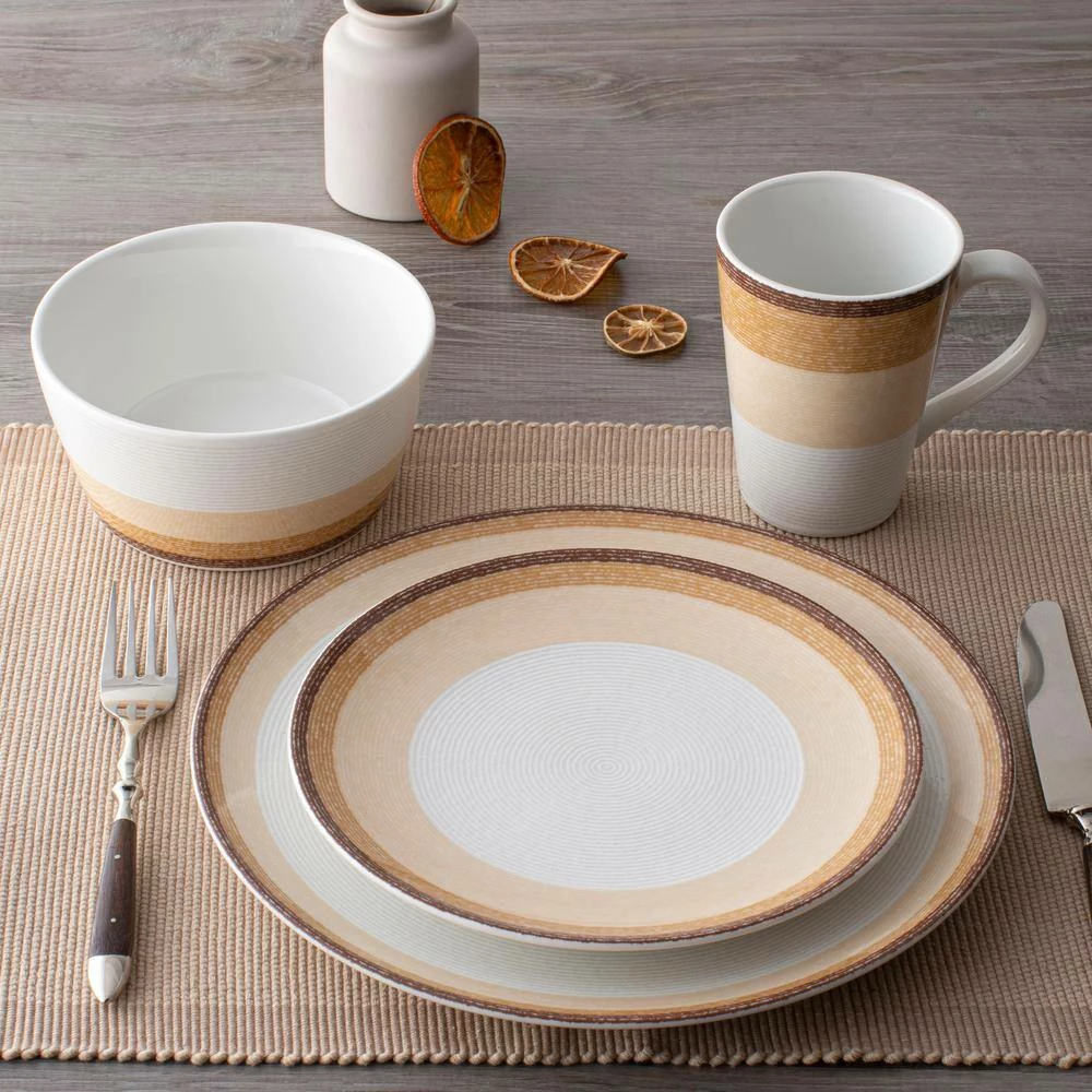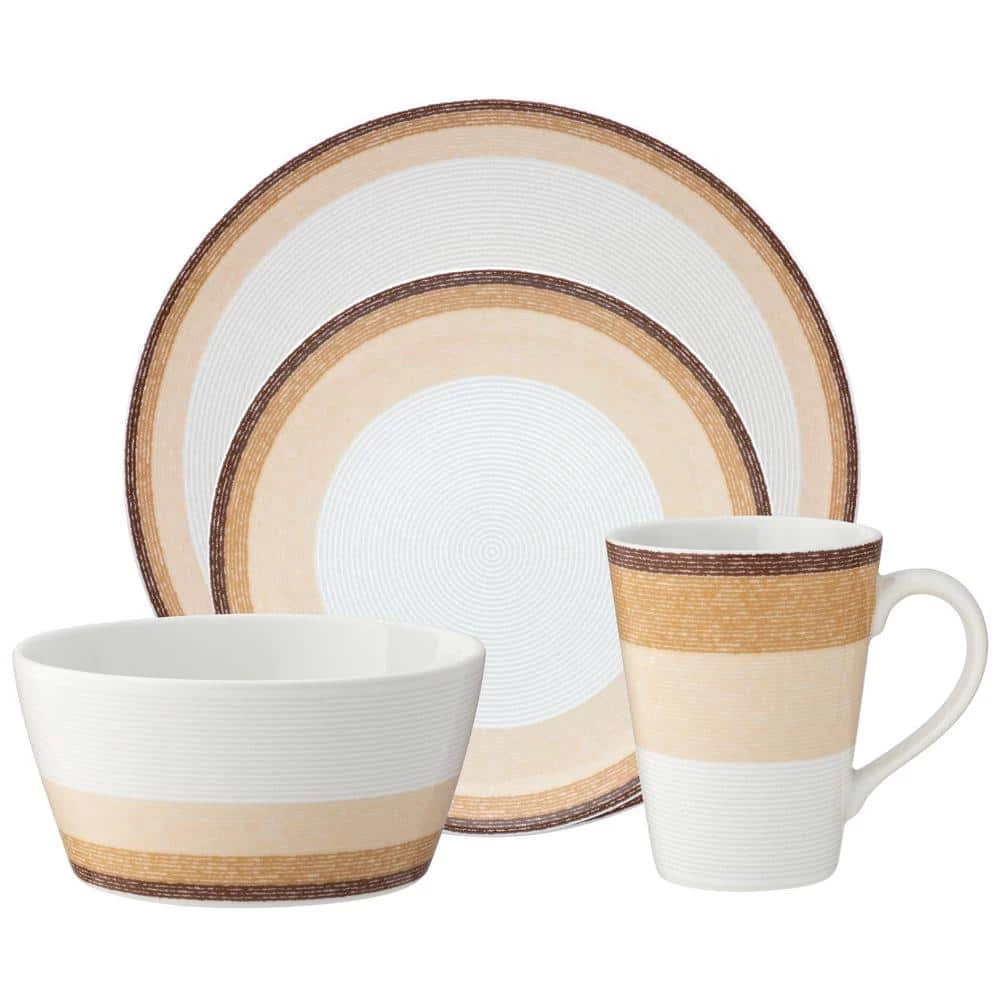 - 4-Piece Place Setting includes 1 dinner, 1 salad, 1 cereal bowl, 1 mug