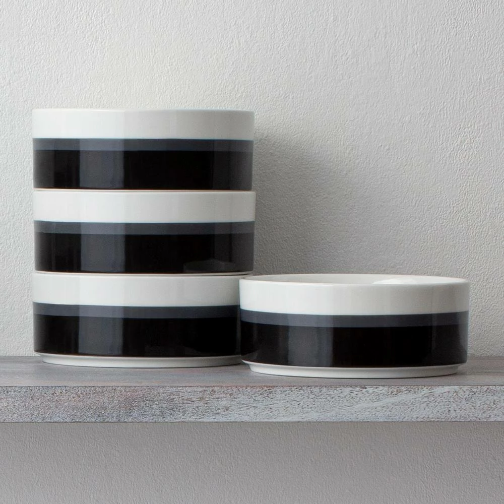 Stax Stripe is part of the Stax collection by Noritake. Stax is a collection of modular dinnerware crafted in porcelain. Stax dinnerware is available in multiple colorways which blend the color hues artfully from light to dark. The items in this collection are designed to fit together, with plates acting as lids for the bowls. This collection looks striking on the table and on a shelf! Stax is crafted in durable porcelain, safe to use in the microwave and dishwasher, and is designed for daily use.