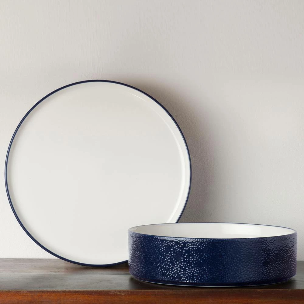 The Colortex Collection is a distinctly modern grouping of dinnerware. It is available in 6 exterior colors (Black, Blush, Grey, Navy, Taupe, White), showcasing a glossy pebble texture against a bright white glazed interior. The range of colors and items available provide an array of options for the table.