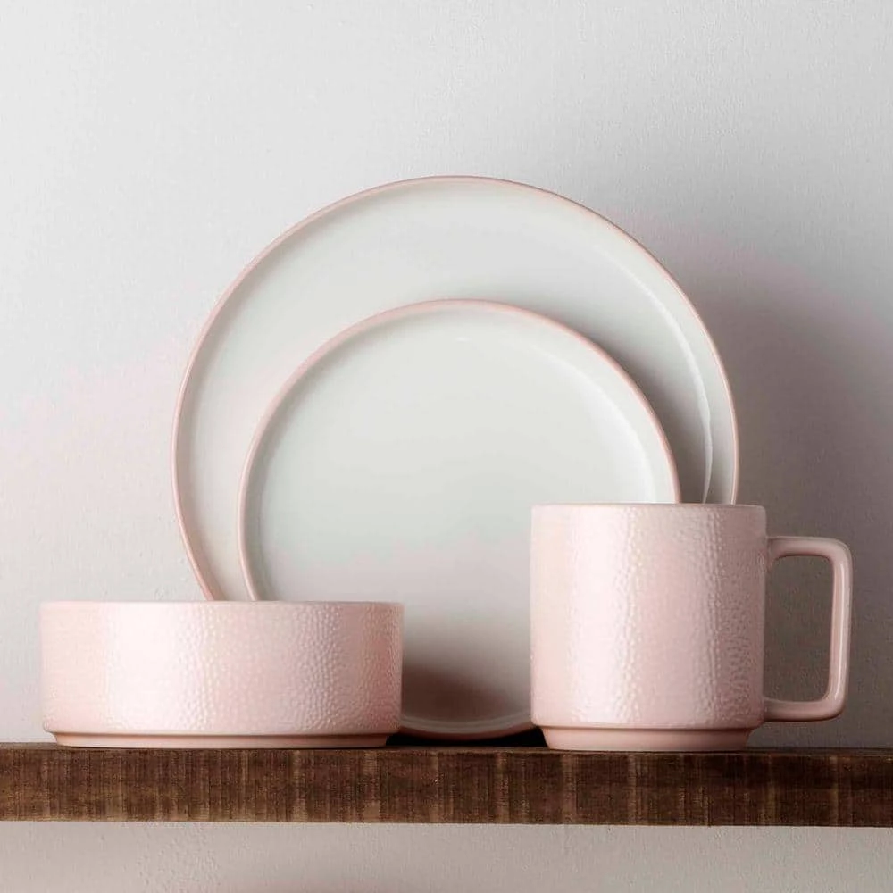 The Colortex Collection is a distinctly modern grouping of dinnerware. It is available in six exterior colors (Black, Blush, Grey, Navy, Taupe, White), showcasing a glossy pebble texture against a bright-white glazed interior. The range of colors and items available provide an array of options for the table.