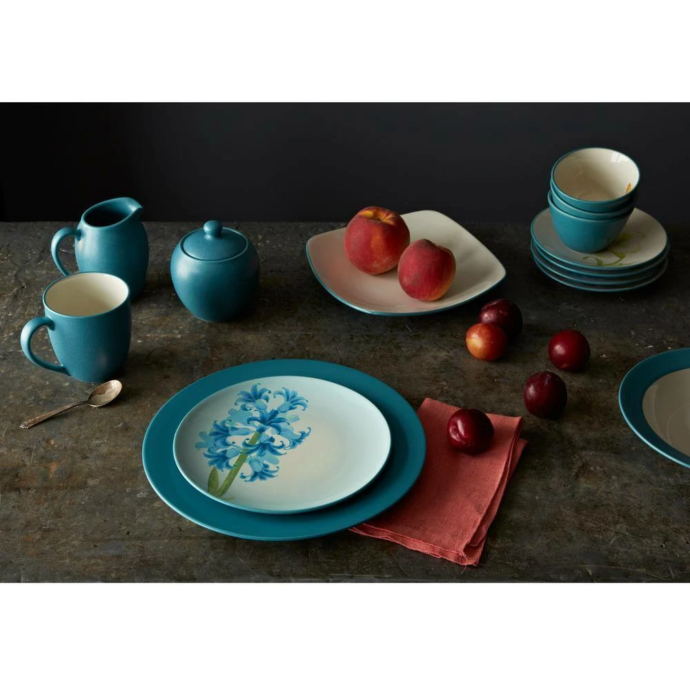 Color wave Turquoise has a matte-textured, deep coloration on the outside suggestive of mountain lilacs, tropical oceans and lapis lazuli, and a glossy, cream-colored glaze on the inside. Mix and match the different shapes (available in coupe, rim, and square) and other Color wave items to add color and interest to your table. Dishwasher Safe, Microwave Safe.