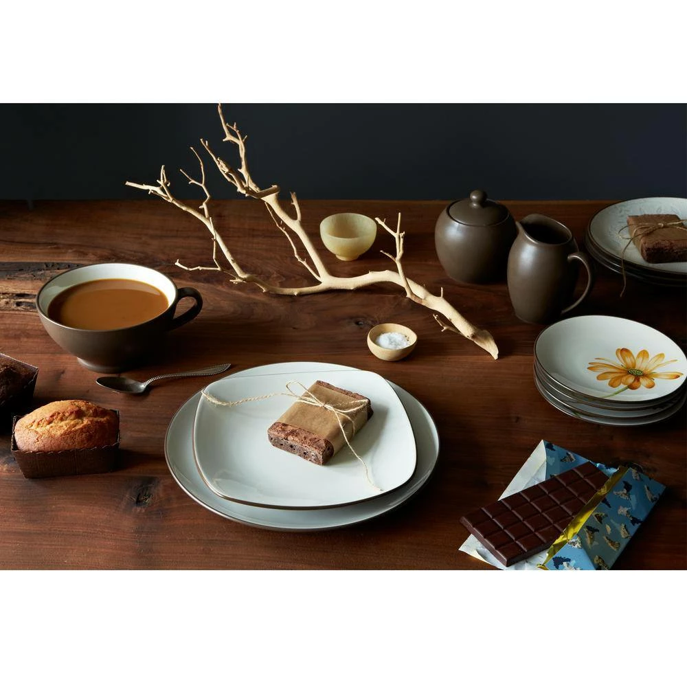 Colorwave Chocolate has a matte-textured, deep coloration on the outside resembling coffee, walnut wood, peppercorns and hot fudge, and a glossy, cream-colored glaze on the inside. Mix and match the different shapes (available in coupe, rim, and square) and add a splash of color to your table. Colorwave dinnerware is made of fine stoneware that is microwave, and dishwasher safe.