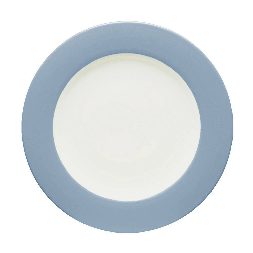 Colorwave Ice has a matte-textured, deep coloration on the outside suggestive of glaciers, blue topaz, and chicory flowers, with a glossy, cream-colored glaze on the inside. Mix and match the different shapes (available in coupe, rim, and square) and add a splash of color to your table! Dishwasher Safe, Microwave Safe.