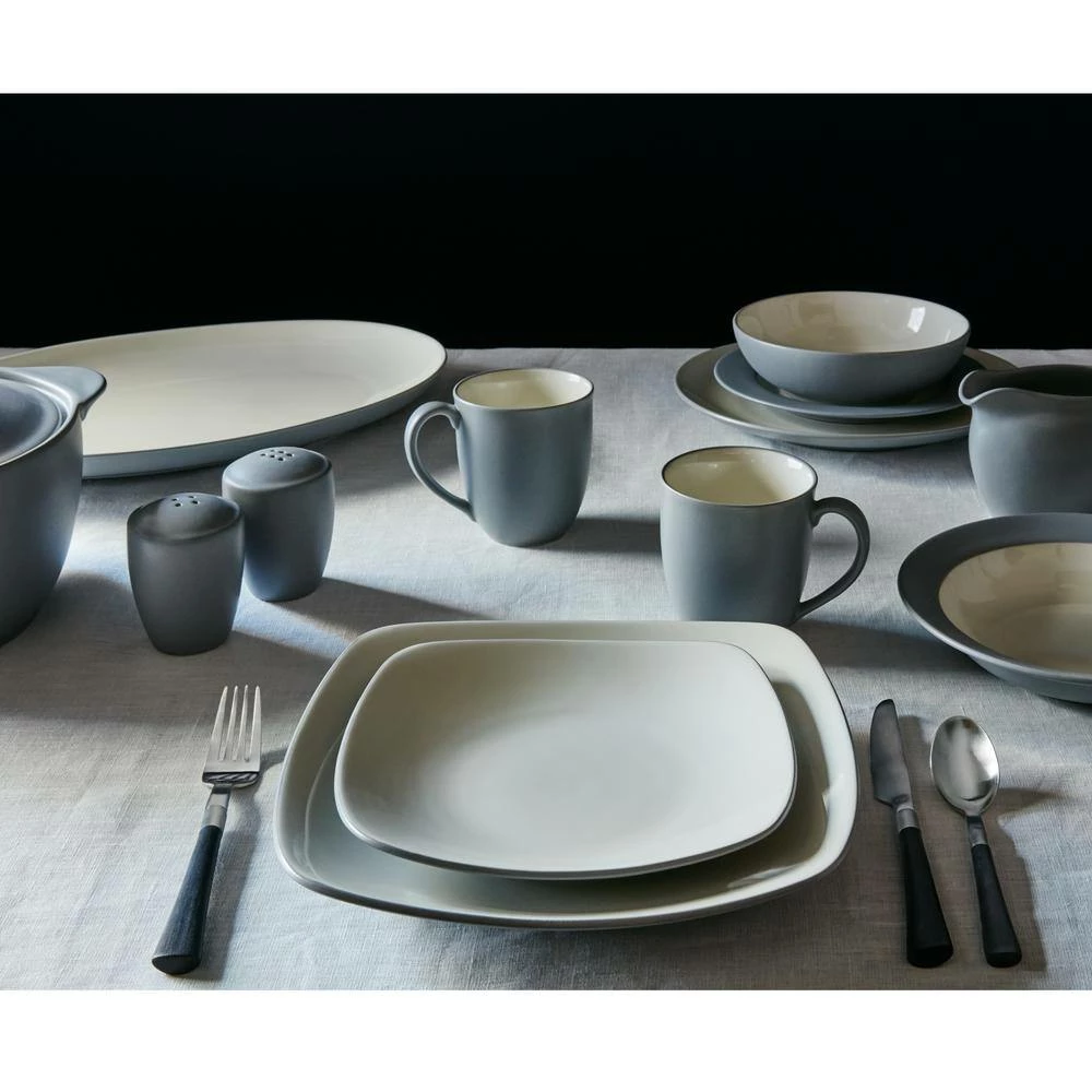 Colorwave Slate has a matte-textured, deep coloration on the outside suggestive of a doves feather, weathered rocks and cloudy skies and a glossy, cream-colored glaze on the inside. Mix and match the different shapes (available in coupe, rim and square) and add a splash of color to your table. Colorwave dinnerware is made of fine stoneware that is microwave and dishwasher safe.
