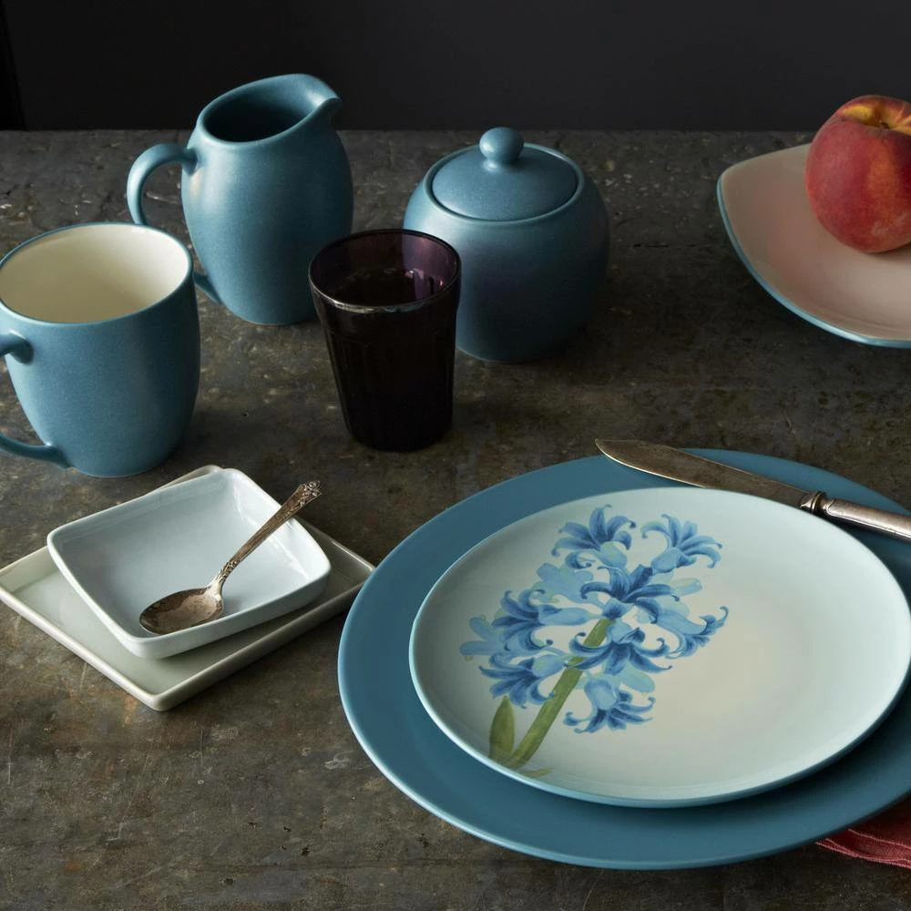 Colorwave Turquoise has a matte-textured, deep coloration on the outside suggestive of mountain lilacs, tropical oceans and lapis lazuli, and a glossy, cream-colored glaze on the inside. Mix and match the different shapes (available in coupe, rim, and square) and other Colorwave items to add color and interest to your table! Dishwasher Safe, Microwave Safe.