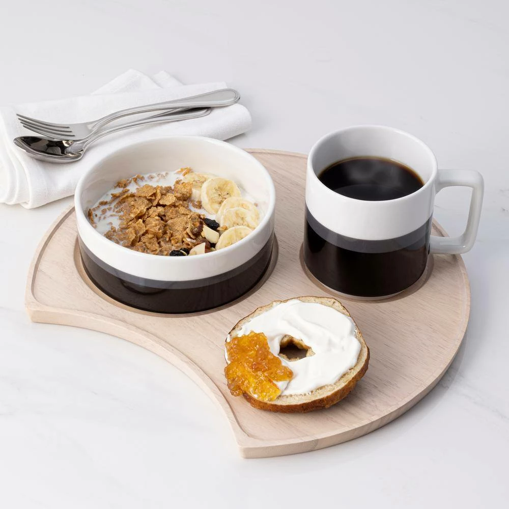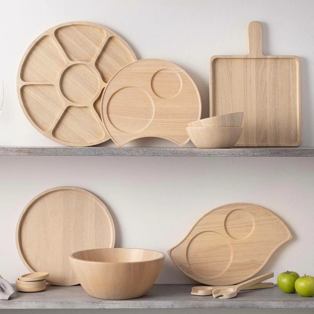 Hammock Wood 13 in x 11.75 in Blonde Wood Serving Tray, Crescent Shape by Noritake
