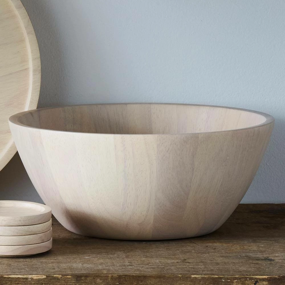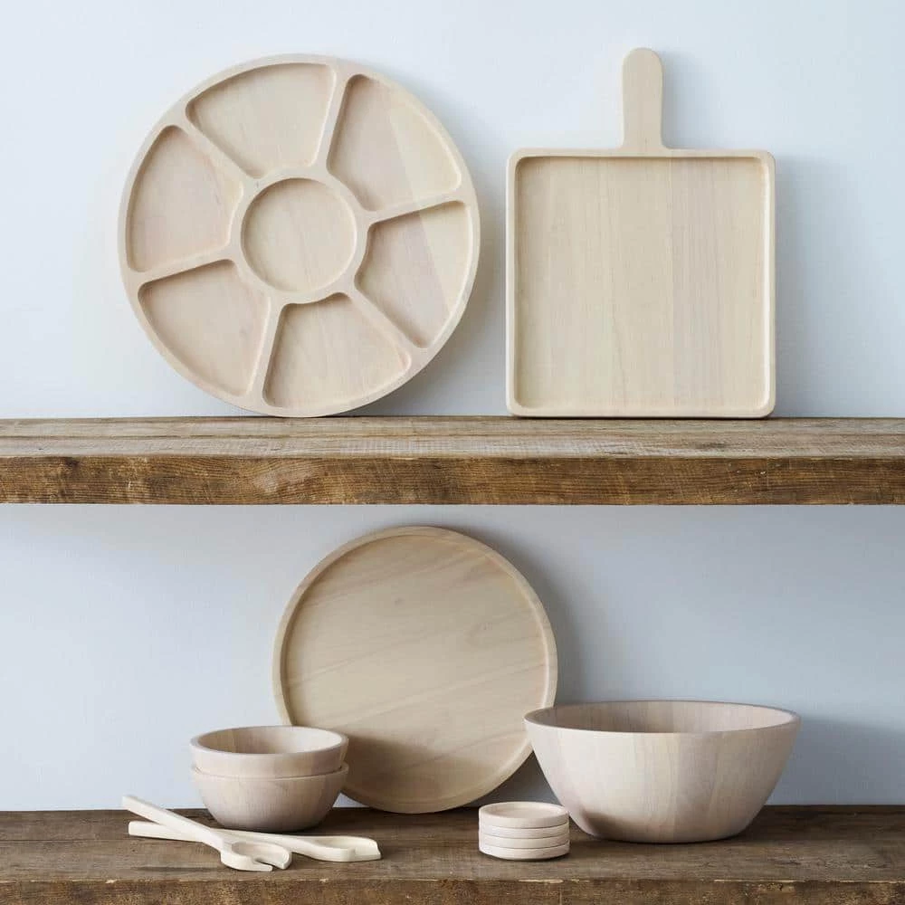 Hammock Wood items are made of wood from the Par rubber tree, featuring a finished blonde color, subtly accentuating the natural wood grain. This collection works well on its own or coordinating with the Hammock dinnerware collection. Hammock Wood is hand-wash only.