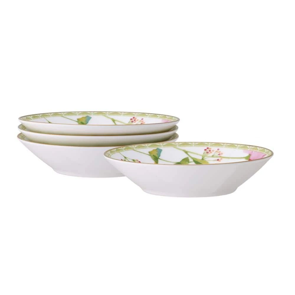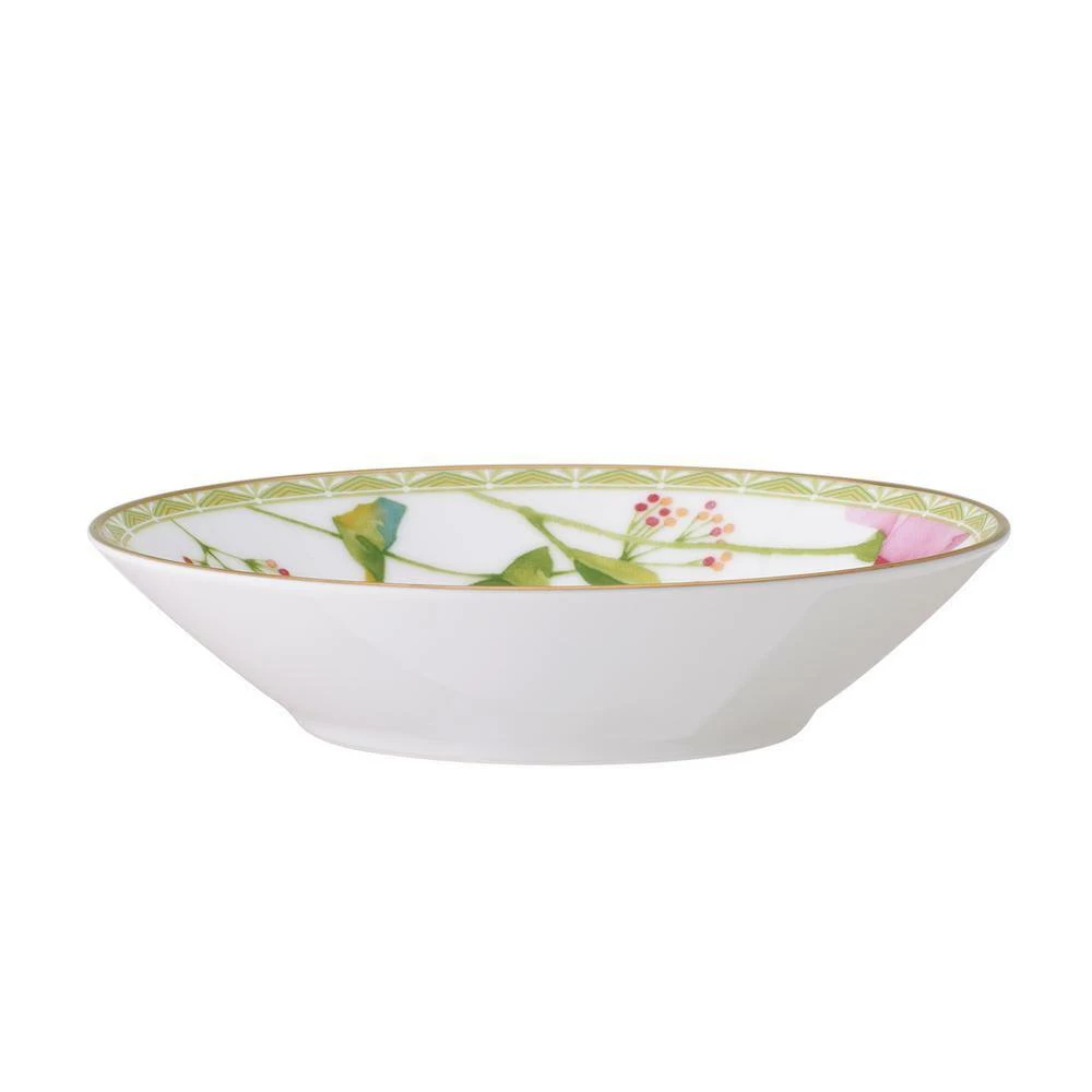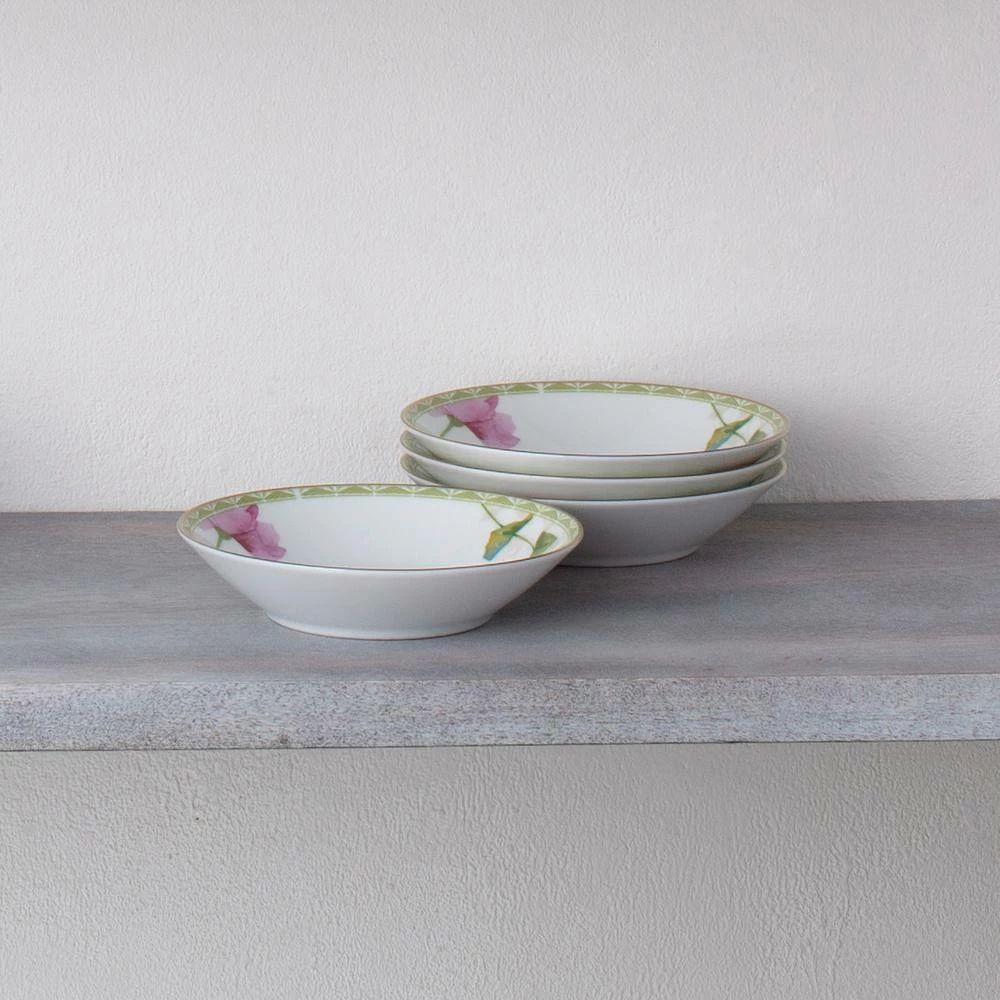 Poppy Place brings a light and airy garden to the table. Pink poppies are paired with elegant greenery, and the outer edges feature layered chevrons and a delicate gold edge. Poppy Place is crafted in white porcelainand is perfect for both everyday use and a more formal dining experience.
