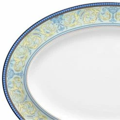 Menorca Palace Blue/Yellow White Bone China Medium Oval Platter 14 in. by Noritake