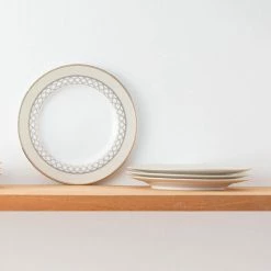 10.5 in. White/Blue Bloomington Road White Porcelain Dinner Plates (Set of 4) by Noritake